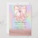 Rose Gold Glitter Bokeh, Pink Bow Holographic Invitation