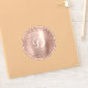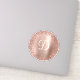 Create your own circle shape die cut style sticker with faux metallic rose gold foil and a rose gold glitter border.