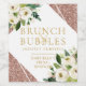 Rose Gold Glitter Bridal Shower Bottle Label with personalised Brunch and Bubbles title and a little fun snark along with the bride's name along with a pretty neutral floral design and trendy geometric accents.