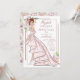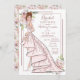 Pink floral bridal shower invitation features a bride to be in a rose gold glitter wedding gown. Choose hair and skin colour to match the bride.