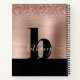 Rose Gold Glitter Brushed Metal Black Monogram Notebook