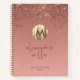 Rose Gold Glitter Brushed Metal Monogram Script Notebook