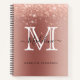 Rose Gold Glitter Brushed Metal Pink Monogram Notebook