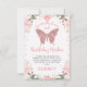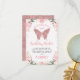 Sweet butterfly themed birthday thank you card featuring two lovely watercolor pink floral arrangements, faux rose gold glitter butterfly and your little girl's photo on the right hand side. This sweet butterflies birthday invitation design is cute way to thank guests for coming to your little girls butterfly themed birthday party.