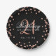 Rose Gold Glitter Confetti Black 21st Birthday Paper Plate