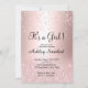 A modern, original and simple faux rose gold glitter diamond confetti and ombre with rose gold metallic It's a girl baby shower invitation on a fully customizable blush pink color background