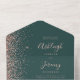 Rose Gold Glitter Dark Green QR Code Wedding All In One Invitation