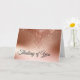 Send a message of warmth, sympathy, or encouragement with this beautiful and modern "Thinking of You" card. The design features a stunning, subtle rose gold metallic background that is elegantly topped with a generous cascade of shimmering rose gold glitter and confetti that fades towards the bottom. The message, "Thinking of You," is scripted in a beautiful black cursive font. This versatile card is perfect for showing you care during difficult times, celebrating a friend's success, or sending simple well wishes.