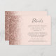 The left-hand edge of this elegant modern wedding details enclosure card features a rose gold faux glitter design. The customisable text combines charcoal grey handwriting, copperplate and italic fonts on a blush pink background. The reverse side features a matching blush and rose gold glitter design.