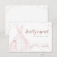 Elegant RSVP cards feature watercolor blush pink dress with sparkle faux rose gold glitter details.