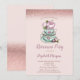 Rose Gold Glitter Floral Tea Cup Retirement Invitation
