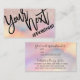 This is the perfect Appointment Card for a trendy, stylish, and modern business. This design features chic, girly, and pretty black brushstroke typography on a glamourous and girly faux printed rose gold glitter with pink, peach, blue, and purple iridescent holographic ombre gradient background. These cards will add that personal and professional touch to your business and career advertisement.