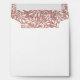 Rose gold glitter pattern of leaves and monogram wedding and engagement white envelope for square or circular round invitations. It showcases a lovely pattern of white leaves on rose gold glitter background on the inside and your initials in rose gold pink on the white outside.