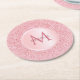 Rose Gold Glitter Look Template Stylish Girly Monogram Elegant Modern Round Paper Coaster.