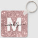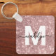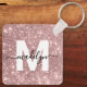 This cute square keychain brings a fun and modern touch to your everyday essentials. The design features a bold white monogram initial centred on a faux rose gold glitter background with soft blush pink hues blended in, giving it a dreamy and feminine vibe. Your name is displayed across the monogram in elegant black script. The same stylish design appears on both sides for a polished, cohesive look.