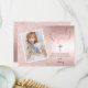 A chic and luxurious rose gold glitter ombre metallic foil design with elegant calligraphy typography for a thank you first communion with cross invitation . Upload your photo.
