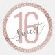 Rose Gold Glitter ombre pink and grey round circle "Sweet 16" birthday sticker seal for envelopes and favours, perfect for an elegant modern teen birthday party, sweet sixteen, and 16th birthday. Artwork is a printed image of glitter - no real glitter is used. Visit the Paper Grape Zazzle shop for coordinating party goods, stationery, and invitations.