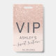 Rose gold glitter ombre script blush Sweet 16 VIP ID Badge