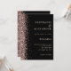Rose Gold Faux Glitter on Black Background Wedding Invitation.