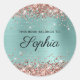 Rose Gold Glitter Pale Turquoise Girly Book Classic Round Sticker