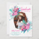Rose gold glitter geometric frame and glitter confetti typography graduation party invitation with hand painted greenery watercolor leaf branches , pink and turquoise flowers. Upload your photo.