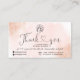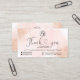 A trendy rose gold glitter, sparkles ombre gradient with pastel blush pink abstract watercolor brushstroke thank you heart script and an elegant script font. Add your social media and logo.