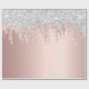 Elegant, classic, glamourous and feminine style party wrapping paper. A girly pink, rose gold background decorated with faux rose gold and silver glitter drips.