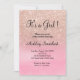 A modern, original and simple faux rose gold glitter ombre It's a girl baby shower invitation on a hand painted pastel pink watercolor background