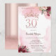 Rose Gold Glitter Roses Crown 30th Birthday Invitation