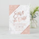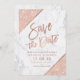 Rose Gold typography on white marble rose gold glitter colour block, and faux rose gold geometric stripes chic save the date wedding , perfect for elegant, stylish wedding,