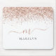 Rose Gold Glitter Script Name Monogram Initial Mouse Mat