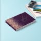 This elegant wedding guest book features a rose gold faux glitter border on a dark purple background. Easily customise the real rose gold foil text, with the names of the couple in whimsical handwriting calligraphy over a large ampersand. Add additional text of your choice to the front and spine.