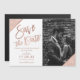 Rose Gold typography on customisable white rose gold glitter colour block, and faux rose gold geometric stripes chic save the date wedding , perfect for elegant, stylish wedding,