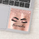 Rose Gold Faux Foil Metallic Sparkle Glitter Brushed Metal Monogram Name and Initial Eyelashes (Lashes), Eyelash Extensions and Eyes Blush Pink Sticker Label. The design makes the perfect sweet 16 birthday, wedding, bridal shower, anniversary, baby shower or bachelorette party gift for someone looking for a trendy cool style.