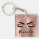 Rose Gold Faux Foil Metallic Sparkle Glitter Brushed Metal Monogram Name and Initial Eyelashes (Lashes), Eyelash Extensions and Eyes Blush Pink Keychain. This makes the perfect sweet 16 birthday, wedding, bridal shower, anniversary, baby shower or bachelorette party gift for someone decorating her room in trendy cool style.