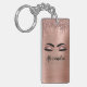 Rose Gold Faux Foil Metallic Sparkle Glitter Brushed Metal Monogram Name and Initial Eyelashes (Lashes), Eyelash Extensions and Eyes Blush Pink Keychain. This makes the perfect sweet 16 birthday, wedding, bridal shower, anniversary, baby shower or bachelorette party gift for someone decorating her room in trendy cool style.