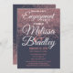 Rose Gold Glitter Sparkles Navy Blue Engagement Invitation