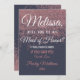 Rose Gold Glitter Sparkles Navy Blue Maid of Honou Invitation