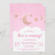 A little star is coming! Celebrate your baby shower with this cute rose gold glitter sparkles sparkles, moons and clouds on pink watercolor with elegant modern typography.