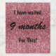 funny i've waited 9 months for this wine, baby shower gift, new mum, pregnancy gift for new mum with a tint of humour. Cute congratulations for new mommys that endured nine months without wine (worth it!) with a rose gold glam girl glitter background