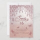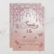 Adorable butterfly charming drips rose gold glittery ombre Sweet 16 invitation.