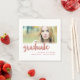 Elegant modern custom photo graduation paper napkins perfect as decorations at your daughter's graduation party. Design by Elke Clarke © A simple rose gold foil typography handwritten bold script font (printed photo effect) with the word "graduate" with a photo frame design. Replace sample photo with your own. White and pink rose gold colours. Other styles and colours available.