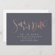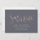 Hand lettered save the date script in faux rose gold foil on colour editable smoky grey, elegant and stylish, great modern simple personalised save the date cards.
