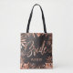 Rose Gold & Grey Tropical Palm Leaves Bride Tote Bag