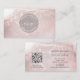 This luxury business card features an initials logo, rose gold glitter elements with pink blush marble ink texture. Add your website url address to create a QR Code and personalize with your contact information. Perfect for any feminine business such as makeup, beauty, and fashion boutique.