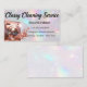 Revolutionise your brand with this luxurious and highly unique business card! Featuring a striking rose gold washing machine and a splash of rose gold glitter, the design is set against a trendy, vibrant holographic background. This card is perfect for high-end Maid Services, Laundry Services, or professional Housekeepers looking to convey a sense of modern, chic professionalism. Easily customise the front with your name (e.g., "Melanie Parker"), contact details, and list of services (Weekly - Monthly - One Time).