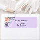 A lavender, violet coloured background. A rose gold and blush pink rose, floral and lavender. Personalise and add your name and address. Black letters.