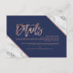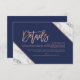 Rose Gold typography on customisable navy blue rose gold white marble colour block and faux rose gold geometric stripes chic wedding directions and details , perfect for elegant, beach wedding,