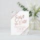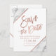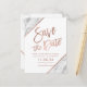 rose Gold typography on customisable white rose gold white marble colour block, and faux rose gold geometric stripes chic save the date wedding , perfect for elegant, stylish wedding,