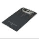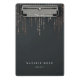 Chic clipboard features two lines of custom text in classic white lettering on a rich soft black background with vertical strands of faux rose gold foil string lights cascading from the top. Design repeats on reverse side. Please note that this clipboard is a mini size; full size version also available in our Rose Gold Marquee collection.